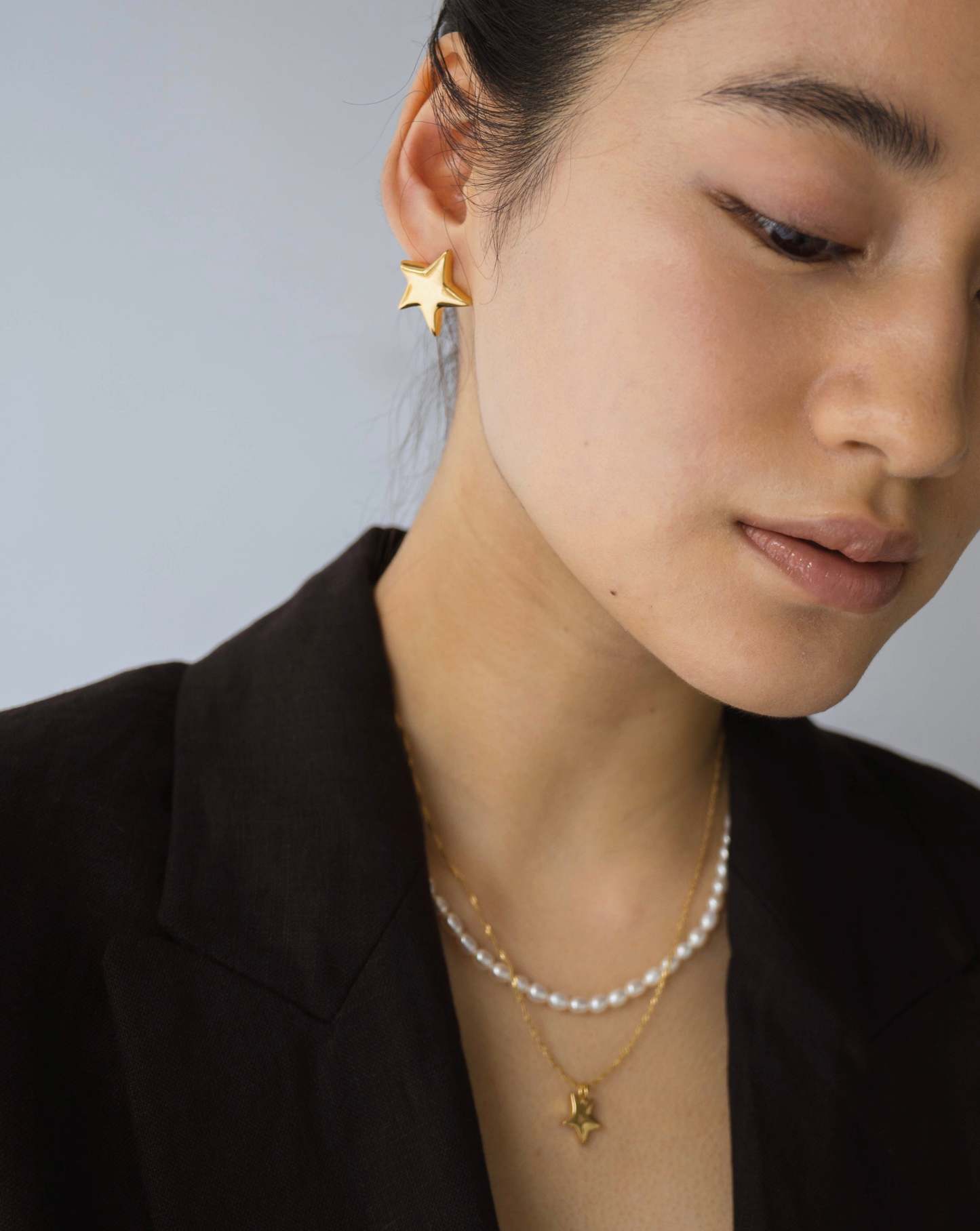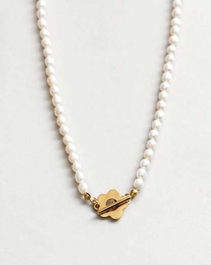 【color】Gold × Pearl 【material】パール部分 .. 淡水パール ホック部分 .. ブロンズ + 14K Gold Plated(ニッケルフリー)【size】約43cm(17")
