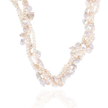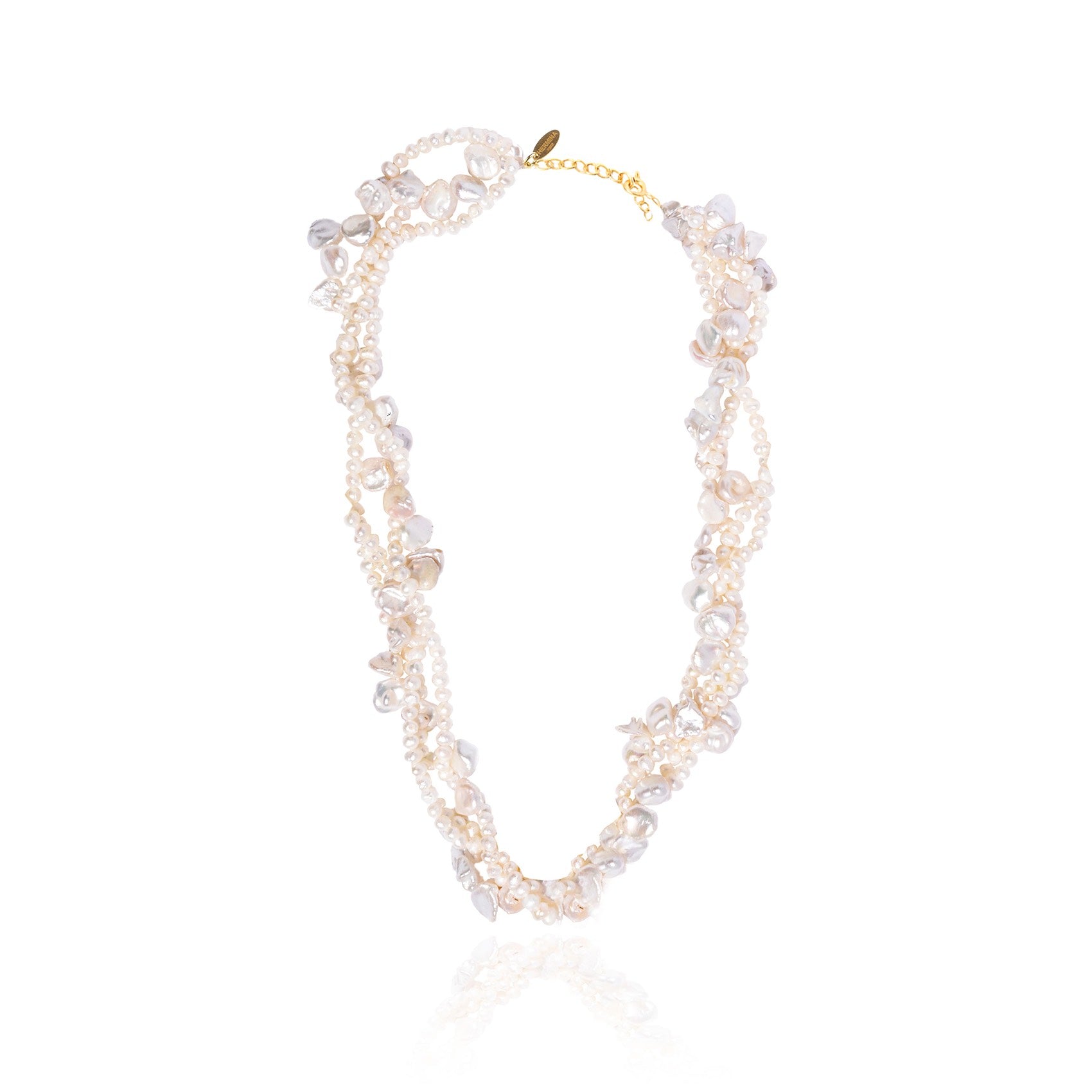 ヴィンテージのパールを4連に絡ませたネックレス。ブレスレットとしてもご着用いただけます。ブランドのポーチが付いています。※天然の物なので、パールの色や形はひとつひとつ異なります。#長さ調節可能_______________【color】Gold × Pearl【material】パール部分 .. 淡水パールメタル部分 .. Silver925 + Gold Plated(ニッケルフリー)【size】全長 .. 約45cm(18")パール部分 .. 約37cmアジャスターチェーン部分 .. 約6cm